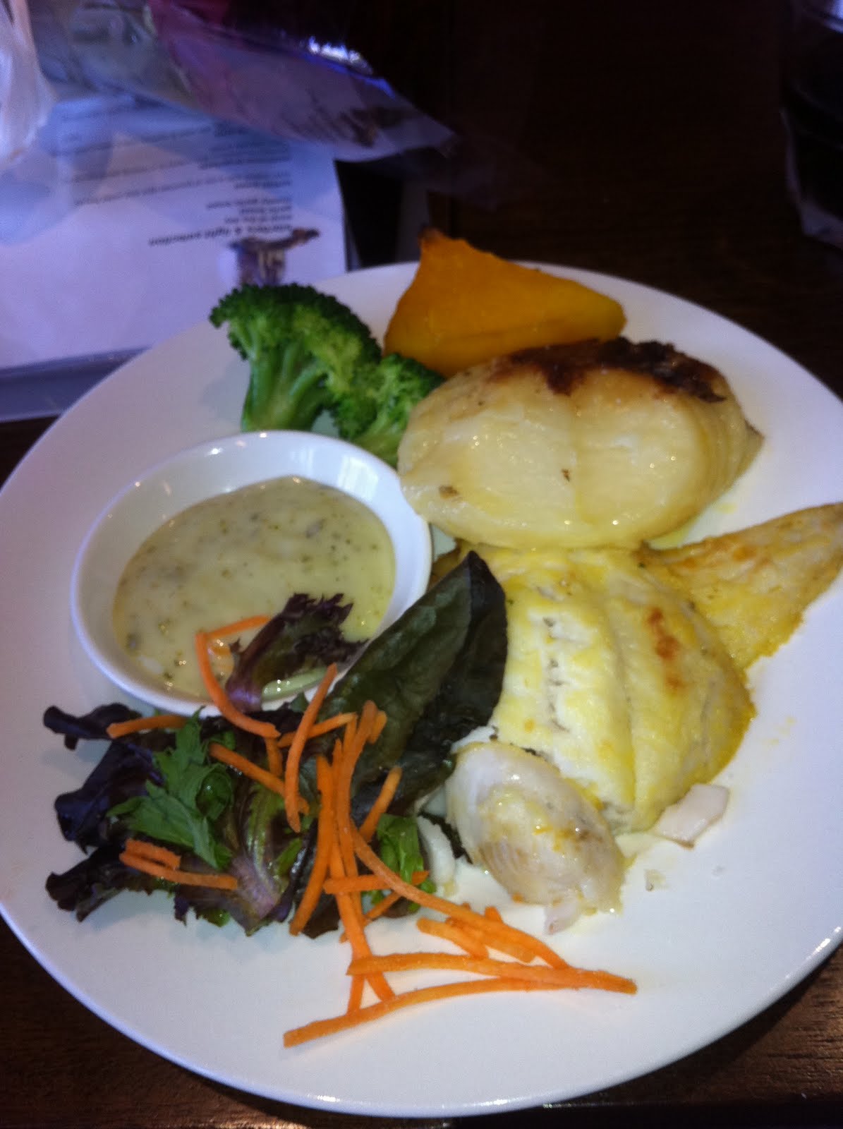 Today, I only had a few eggs. I am sure that I may have a few more but not many. We went out for dinner with Judy and Glenn (Brad’s Mum and step Dad). I had a seniors fish and chips – I managed to eat the fish and the leafy bits of broccoli along with a tablespoon of mashed potato. Oh, and a piece of garlic bread (not a big one at all). I have added a picture of my meal as I know a lot of people are interested to see how much I can eat…